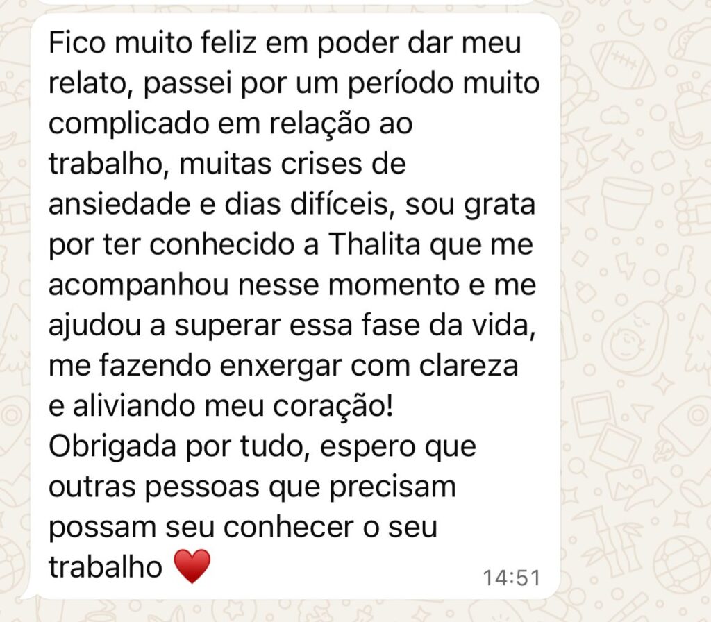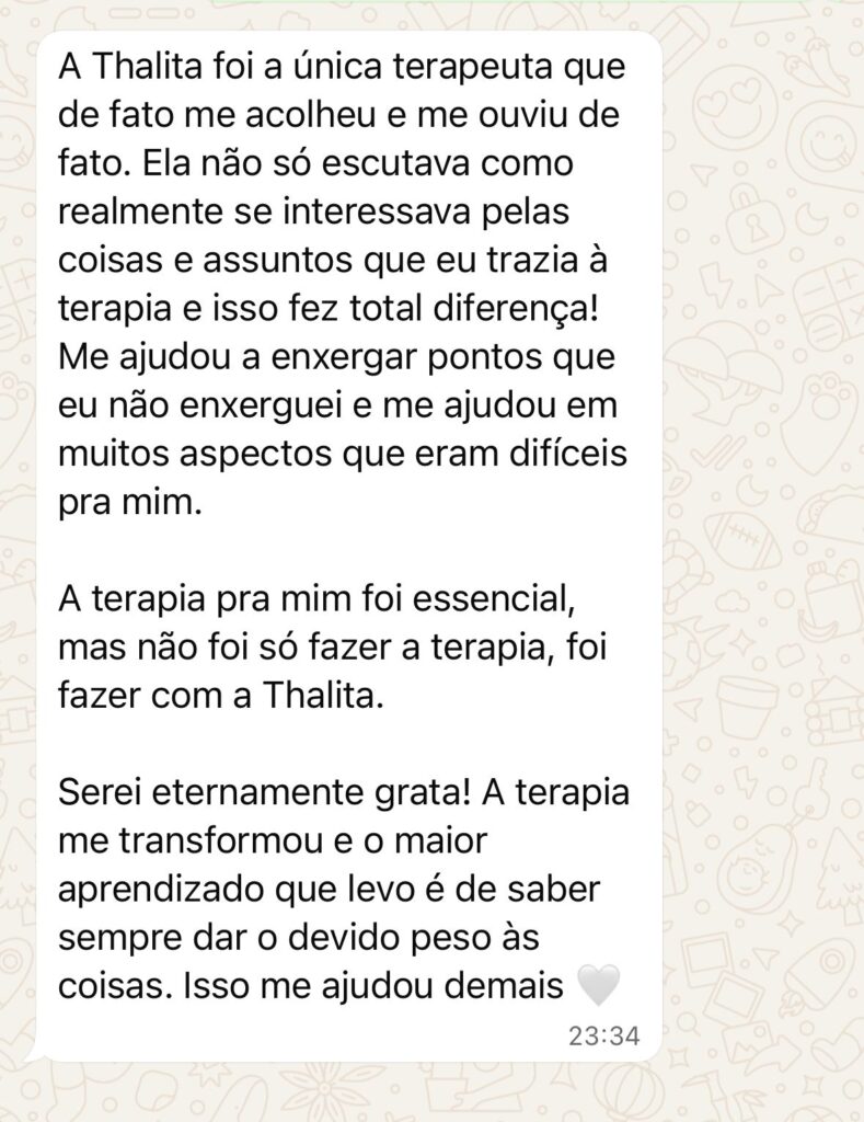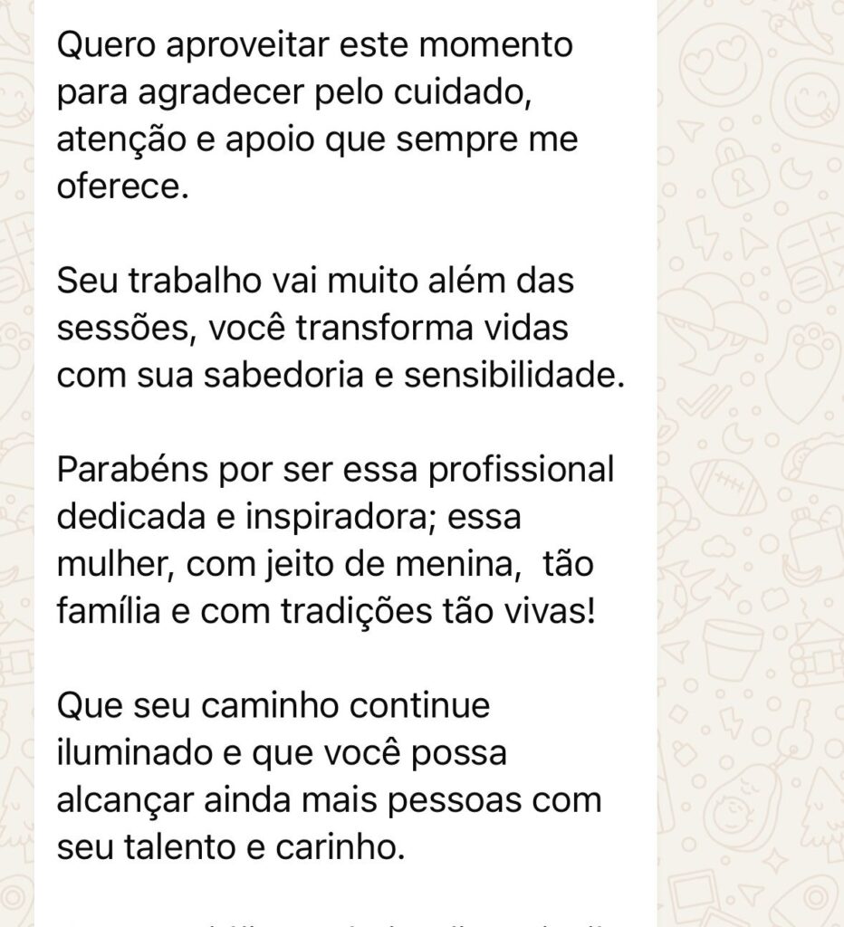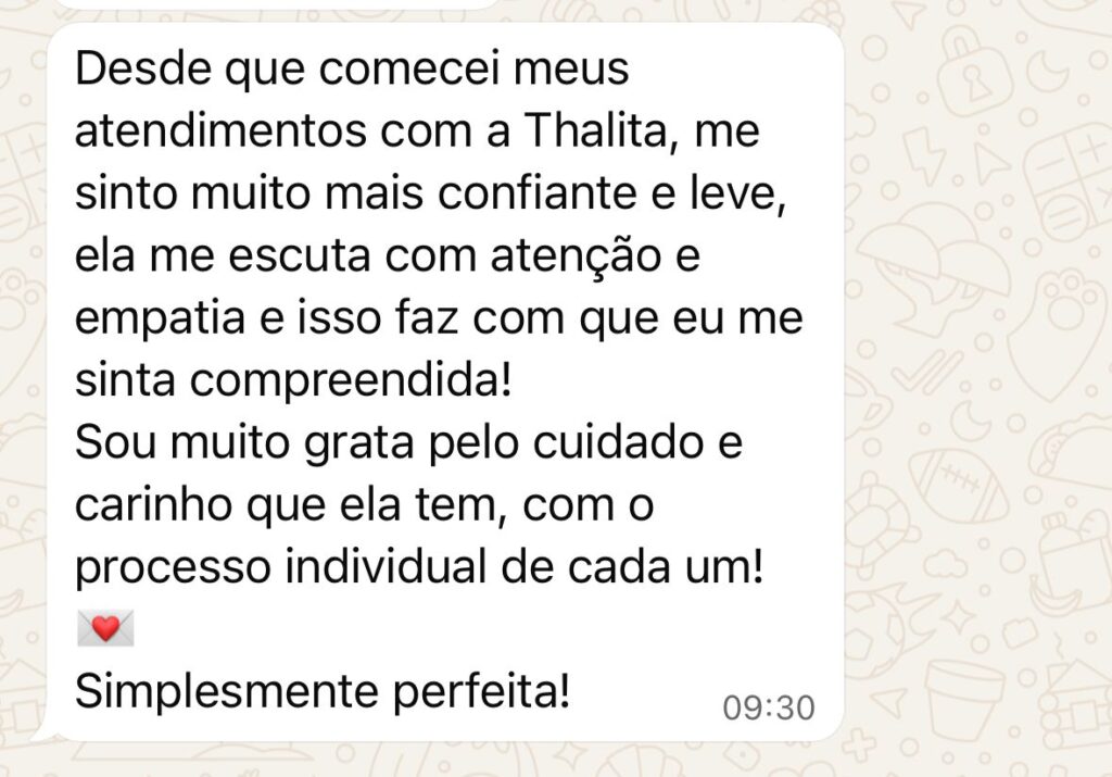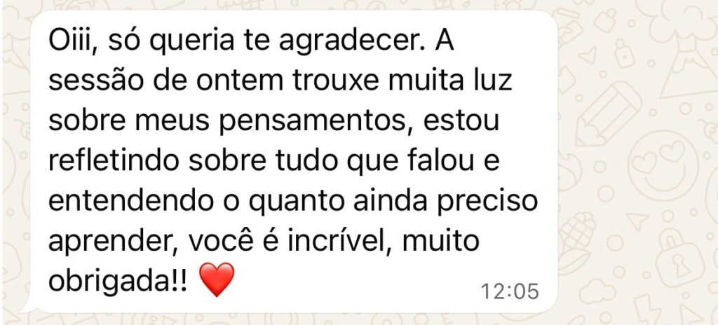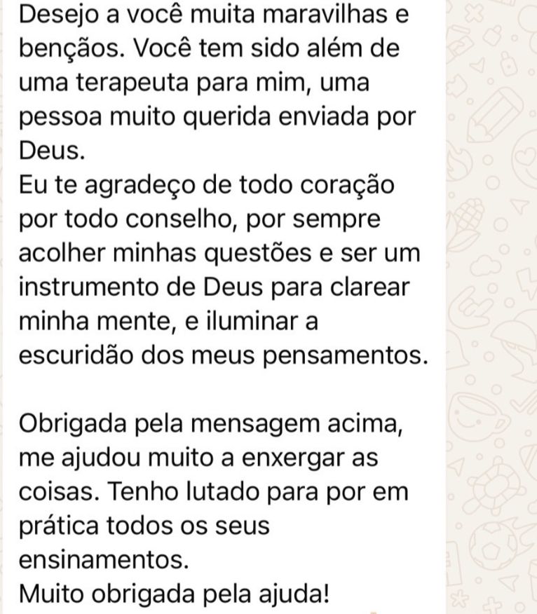 Um espaço seguro e acolhedor para você falar sobre o que está vivendo. Nesta primeira conversa, a terapeuta busca compreender sua história, seus desafios e o que te trouxe até aqui, criando uma conexão verdadeira e o início de um processo de transformação emocional.